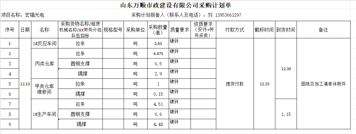 宏福光电项目钢结构隅撑、拉条、支撑采购招标